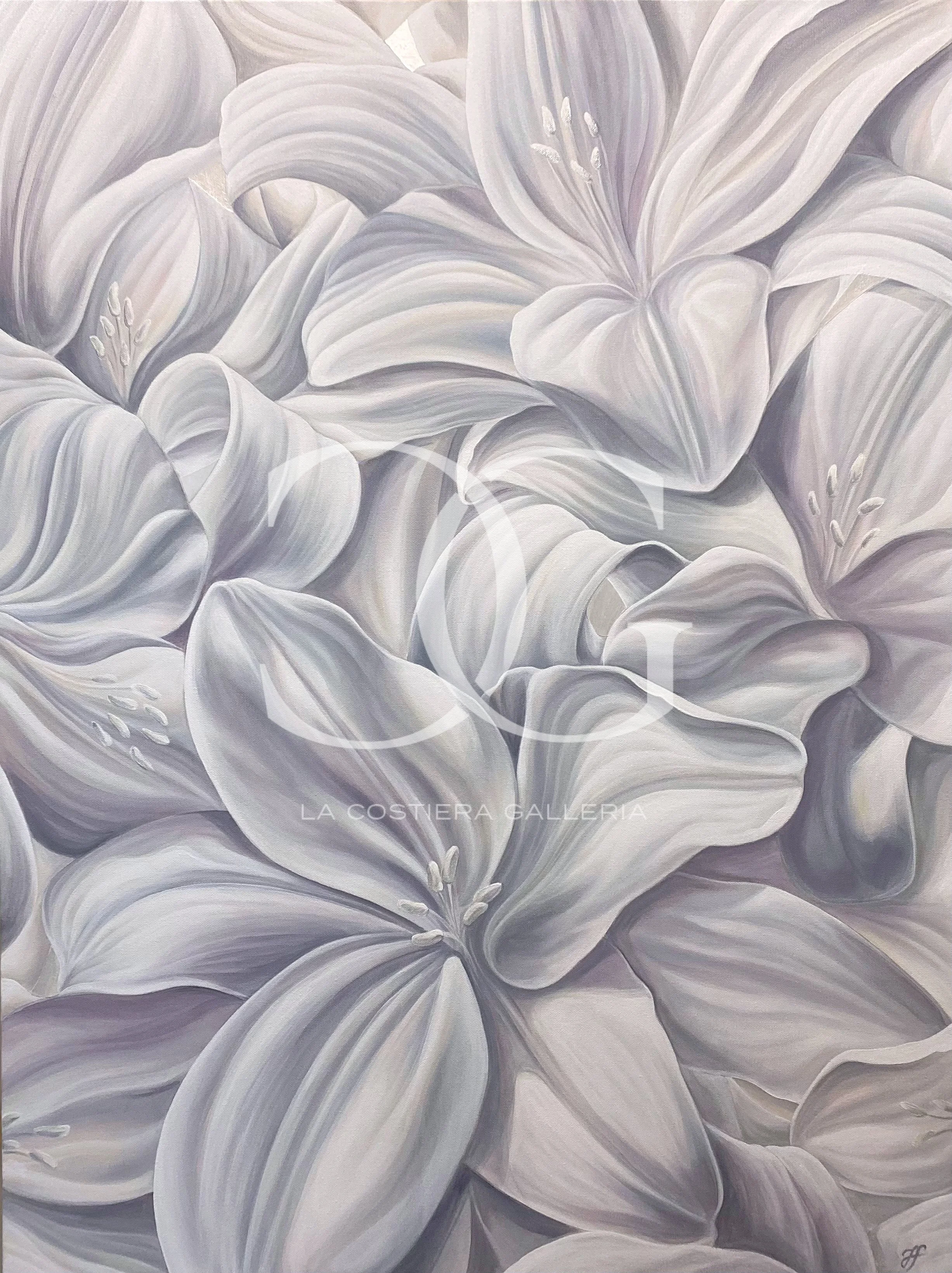 Lilies in Harmony, a celebration of nature’s elegance, inspired by the serene beauty of the Emerald Coast and a touch of Southern charm. Delicate lily petals unfold in soft, flowing layers, kissed with a sterling silver overlay and dynamic lighting that creates a captivating, harmonious effect.